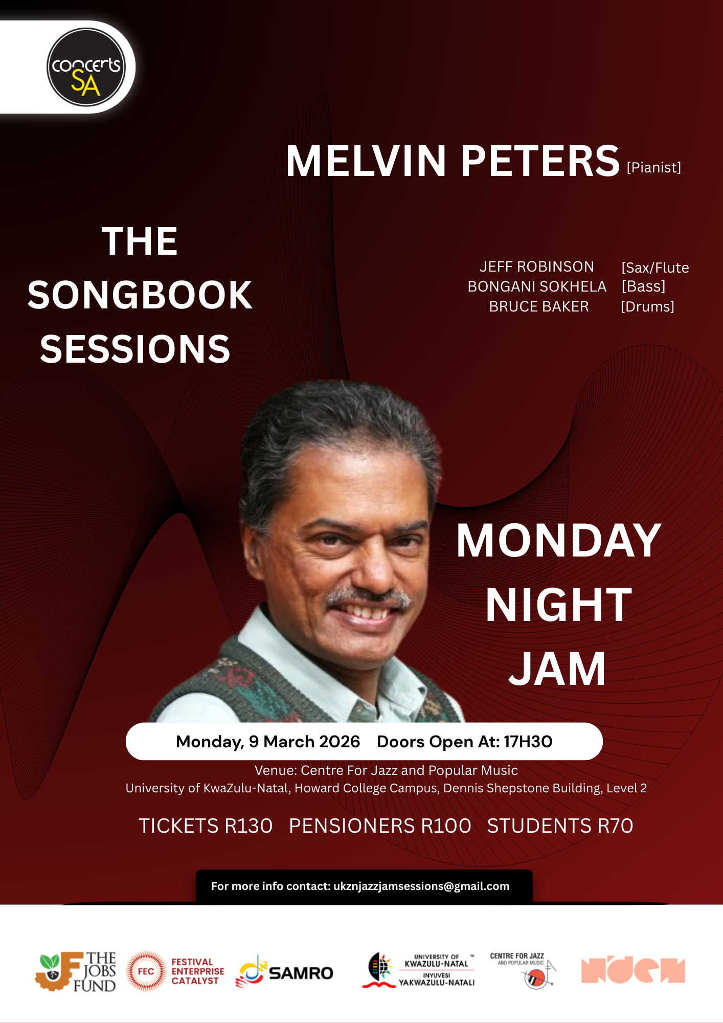 The Songbook Sessions Monday 09 March Featuring The legendary pianist and educator, Melvin Peters, is a master navigator in his own right and brings decades of insight and improvisation. Together with his sophisticated swing and soulful expression make this performance must-see.
